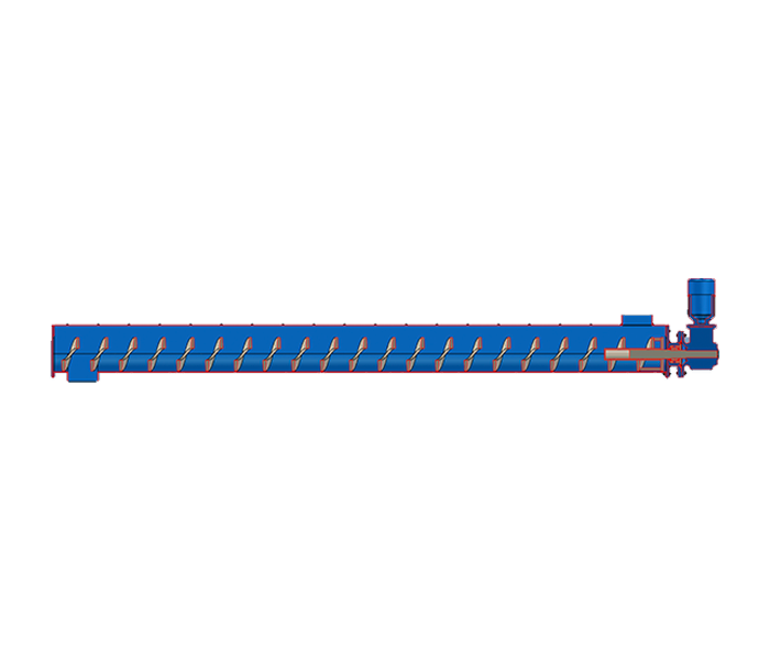 無軸螺旋輸送機的螺旋葉片采用不銹鋼材料通過專用模具的澆鑄而成,因而具有足夠的強度和剛度并且葉片表面光潔、又具有合適的旋轉速度,有效保證在輸送柵渣的過程中不會發生污物纏繞、阻塞現象,同時在輸送量較大的情況下螺旋葉片也不會變形。U型螺旋輸送槽內耐磨襯里設置成半圓狀,其圓弧設置成與無軸螺旋體半徑相吻合以減少過量間隙來提高輸送效果;耐磨襯里采用耐磨性能高的尼龍材料制作,便于安裝及更換,使用壽命長。U型螺旋槽采用不銹鋼板卷制而成,除進料口敞開外,其余部份沿螺旋槽加平蓋封閉,整個傳輸過程在一個密封的槽中進行,降低噪聲,減少了異味的排出;在U型槽的底部設有排放口,并配套排水球閥。
